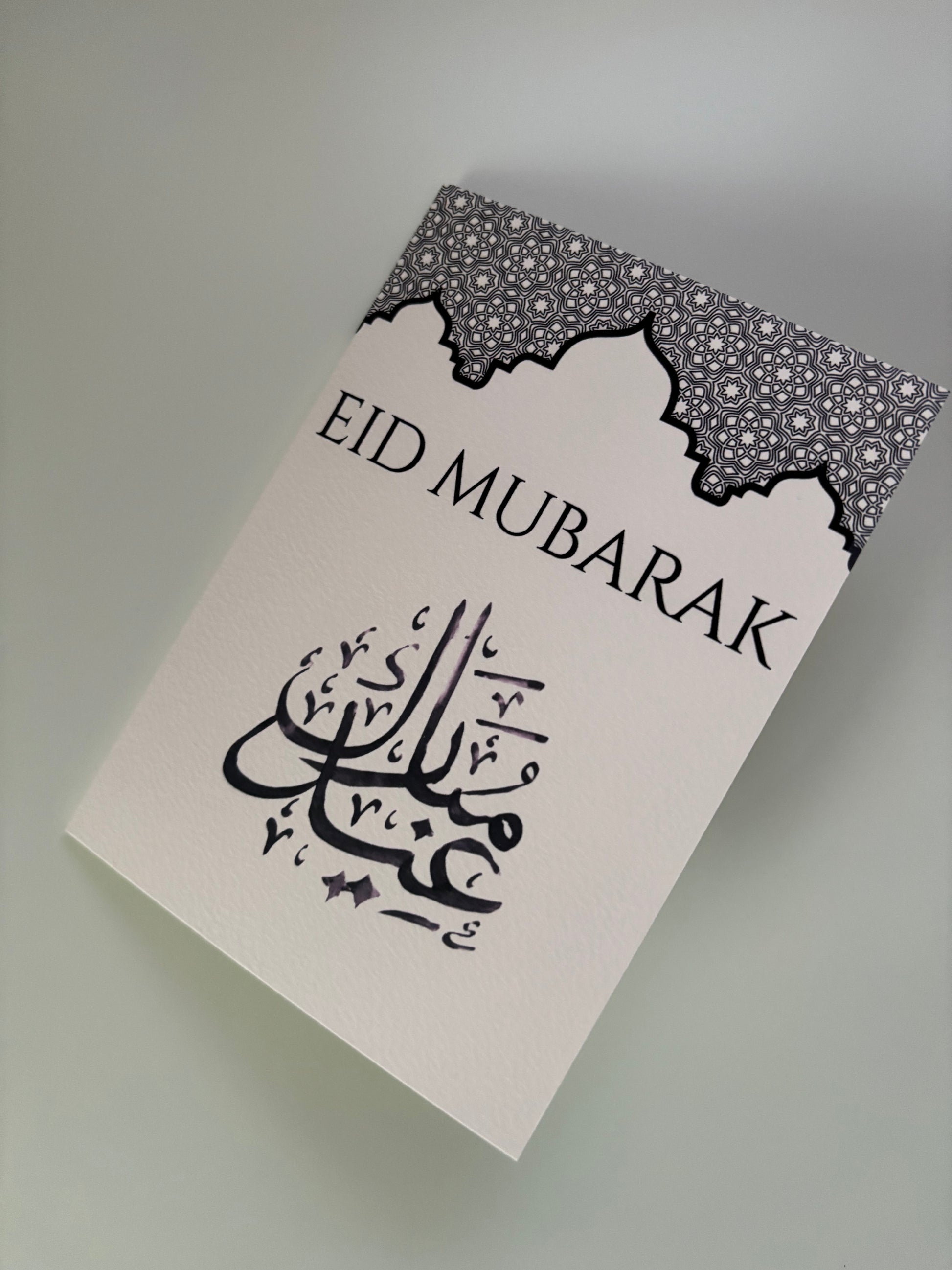 This elegant double-folded card features a refined Eid design on the front and a blank interior, giving you the space to write your own heartfelt message to someone you care about.